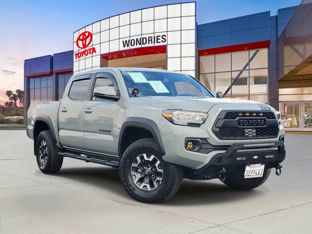 CARFAX One-Owner. Certified.Tacoma TRD Offroad V6, 4D Double Cab, 3.5L V6, 6-Speed Automatic, 4WD, Lunar Rock, Black w/Fabric Seat Trim, 120V/400W Deck Mounted AC Power, 6 Speakers, ABS brakes, Active Cruise Control, Air Conditioning, Alloy wheels, AM/FM radio: SiriusXM, Anti-whiplash front head restraints, Apple CarPlay/Android Auto, Auto High-beam Headlights, Auto-dimming Rear-View mirror, Auto-Dimming Rearview Mirror w/HomeLink, Automatic temperature control, Axle Ratio: 3.91, Bed Light (TMS), Bed Mat (TMS), Black Overfenders, Brake assist, Bumpers: body-color, Carpet Floor Mats & Door Sill Protectors (TMS), Driver door bin, Dual front impact airbags, Dual front side impact airbags, Electronic Stability Control, Emergency communication system: Safety Connect (1-year trial), Engine Immobilizer, Exterior Parking Camera Rear, Fabric Seat Trim, Front anti-roll bar, Front Bucket Seats, Front Center Armrest, Front Door Smart Key System w/Push Button Start, Front dual zone A/C, Front fog lights, Front reading lights, Front Seats, Front wheel independent suspension, Garage door transmitter: HomeLink, Heated door mirrors, Illuminated entry, Knee airbag, Leather Shift Knob, LED Daytime Running Lights & Fog Lights, Low tire pressure warning, Occupant sensing airbag, Outside temperature display, Overhead airbag, Overhead console, Panic alarm, Power door mirrors, Power driver seat, Power Sliding Rear Window w/Privacy Glass, Power steering, Power windows, Predator Tube Steps (TMS), Radio: Audio, Rear step bumper, Remote keyless entry, Security system, Speed control, Speed-sensing steering, Steering wheel mounted audio controls, Tachometer, Telescoping steering wheel, Tilt steering wheel, Traction control, TRD Off Road Package, TRD Shift Knob (TMS), Trip computer, Turn signal indicator mirrors, Variably intermittent wipers, Wheels: 16" Machined Contrast Alloy.Lunar Rock 2023 Toyota Tacoma TRD Off-Road V6 4WD 6-Speed Automatic 3.5L V6CALL FOR AVAILABILTY (626) 414-2522.Toyota Gold Certified Details:* Roadside Assistance* 160 Point Inspection* Vehicle History* Powertrain Limited Warranty: 84 Month/100,000 Mile (whichever comes first) from TCUV purchase date* Limited Warranty: 12 Month/12,000 Mile Limited Comprehensive Warranty: 12 Month/12,000 Mile (whichever comes first) from certified purchase date* Transferable Warranty* Roadside Assistance for 7 Year / 100,000 Mile. Standard New-Car Financing Rates Available. Warranty honored at over 1,400 Toyota dealers in the continental U.S. & Canada. Trade-ins accepted. Trouble-free handling of your transaction, including DMV paperwork* Warranty Deductible: $0Subject to prior sale. Plus tax, dealer installed options, lic, and fees.