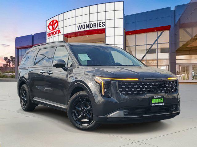 Priced below KBB Fair Purchase Price! 34/31 City/Highway MPG COMING SOON, Carnival Hybrid SX, 4D Passenger Van, 1.6L I4 DGI Hybrid Turbocharged DOHC 16V LEV3-SULEV30, 6-Speed Automatic, FWD, Panthera Metal, Off-Black Artificial Leather, 3rd row seats: split-bench, 4-Wheel Disc Brakes, 8 Speakers, ABS brakes, Air Conditioning, Alloy wheels, AM/FM radio: SiriusXM, Apple CarPlay & Android Auto, Artificial Leather Seat Trim, Auto High-beam Headlights, Automatic temperature control, Brake assist, Bumpers: body-color, Carpeted Floor Mats (8-Passenger), Compass, Dark Edition Front Grille Trim, Dark Edition Mirror Caps, Delay-off headlights, Driver door bin, Driver vanity mirror, Dual front impact airbags, Dual front side impact airbags, Electronic Stability Control, Emergency communication system, Exterior Parking Camera Rear, Four wheel independent suspension, Front anti-roll bar, Front Bucket Seats, Front Center Armrest, Front dual zone A/C, Front fog lights, Front reading lights, Fully automatic headlights, Heated & Ventilated Front Bucket Seats, Heated door mirrors, Heated front seats, Illuminated entry, Knee airbag, Leather Shift Knob, Leather steering wheel, Low tire pressure warning, Memory seat, Navigation system: AVN 5.0 Navigation System, Occupant sensing airbag, Outside temperature display, Overhead airbag, Overhead console, Panic alarm, Passenger door bin, Passenger vanity mirror, Power 2nd-Row Moonroof, Power door mirrors, Power driver seat, Power Liftgate, Power moonroof, Power passenger seat, Power steering, Power windows, Radio: AVN 5.0 Navigation System w/SiriusXM, Rain sensing wipers, Rear air conditioning, Rear anti-roll bar, Rear reading lights, Rear window defroster, Rear window wiper, Reclining 3rd row seat, Remote keyless entry, Security system, Speed control, Speed-sensing steering, Split folding rear seat, Spoiler, Steering wheel mounted audio controls, SX Dark Edition Package, Tachometer, Telescoping steering wheel, Tilt steering wheel, Traction control, Trailer Prewire Harness, Trip computer, Turn signal indicator mirrors, Variably intermittent wipers, Ventilated front seats, Wheels: 7.5J x 19" Alloy, Wheels: 7.5J x 19" Alloy Dark Edition.Panthera Metal 2025 Kia Carnival Hybrid SX FWD 6-Speed Automatic 1.6L I4 DGI Hybrid Turbocharged DOHC 16V LEV3-SULEV30CALL FOR AVAILABILTY (626) 414-2522.Subject to prior sale. Plus tax, dealer installed options, lic, and fees.