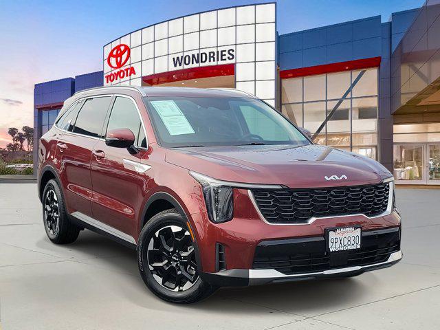 Recent Arrival! CARFAX One-Owner.Priced below KBB Fair Purchase Price! Odometer is 9113 miles below market average! 23/31 City/Highway MPG COMING SOON, Sorento S, 4D Sport Utility, 2.5L I4 DGI DOHC 16V LEV3-SULEV30 191hp, 8-Speed Automatic, FWD, Dawning Red, Black Artificial Leather.Dawning Red 2025 Kia Sorento S FWD 8-Speed Automatic 2.5L I4 DGI DOHC 16V LEV3-SULEV30 191hpCALL FOR AVAILABILTY (626) 414-2522.Subject to prior sale. Plus tax, dealer installed options, lic, and fees.