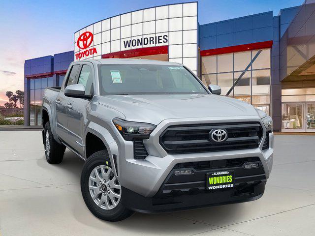 Celestial Silver 2025 Toyota Tacoma SR5 4WD 8-Speed Automatic 2.4L 4-Cylinder Tacoma SR5, 4D Double Cab, 2.4L 4-Cylinder, 8-Speed Automatic, 4WD, Celestial Silver, Boulder Fabric Cloth, 6 Speakers, Air Conditioning, All Weather Floor Liners (TMS), AM/FM radio: SiriusXM, Apple CarPlay/Android Auto, Auto High-beam Headlights, Auto-dimming Rear-View mirror, Brake assist, Electronic Stability Control, Exterior Parking Camera Rear, Four wheel independent suspension, Front fog lights, Fully automatic headlights, Radio: 8" Toyota Audio Multimedia, Rear window defroster, Speed-sensing steering, Traction control.