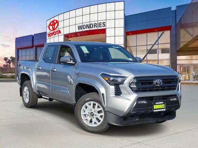 Celestial Silver 2025 Toyota Tacoma SR5 4WD 8-Speed Automatic 2.4L 4-Cylinder Tacoma SR5, 4D Double Cab, 2.4L 4-Cylinder, 8-Speed Automatic, 4WD, Celestial Silver, Boulder Fabric Cloth, 4-Wheel Disc Brakes, 6 Speakers, ABS brakes, All Weather Floor Liners (TMS), AM/FM radio: SiriusXM, Apple CarPlay/Android Auto, Auto-dimming Rear-View mirror, Dual front side impact airbags, Emergency communication system: Safety Connect (1-year trial), Front anti-roll bar, Power steering, Power windows, Radio: 8" Toyota Audio Multimedia, Remote keyless entry, Steering wheel mounted audio controls.